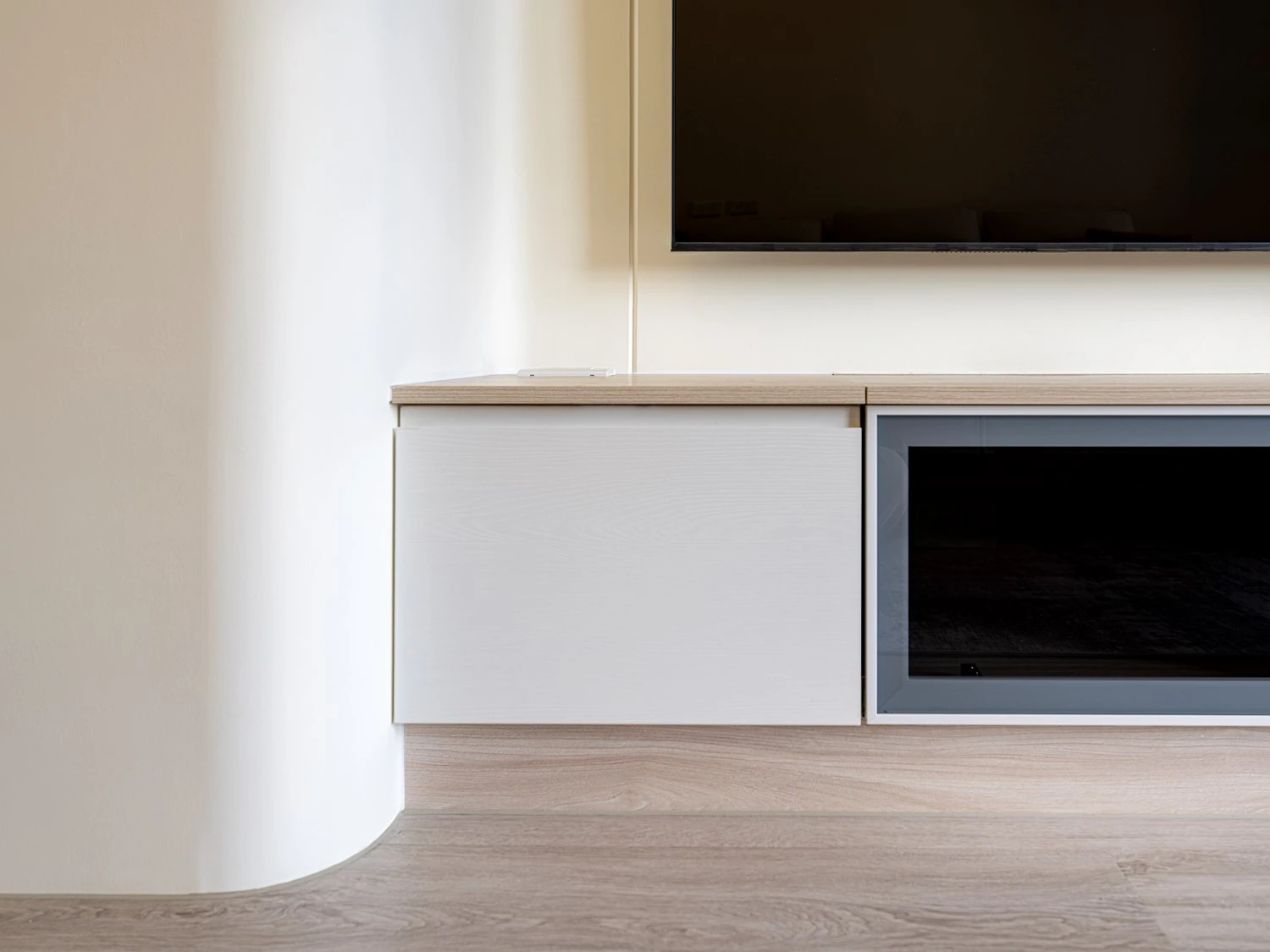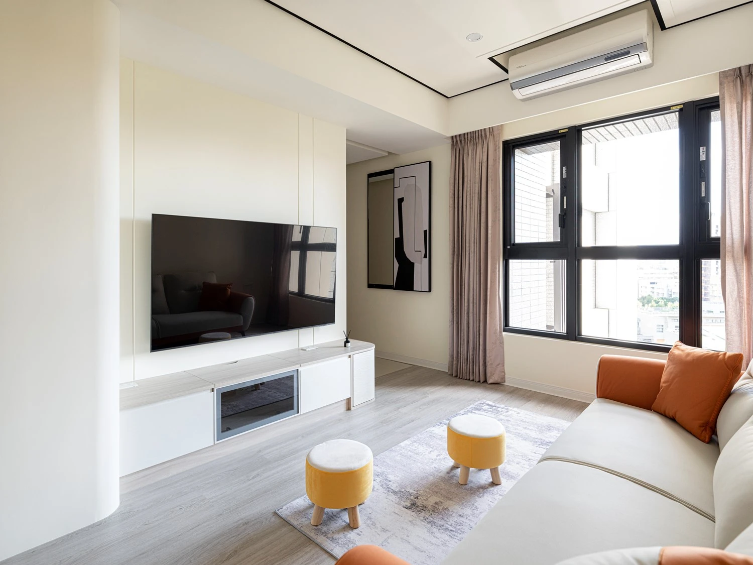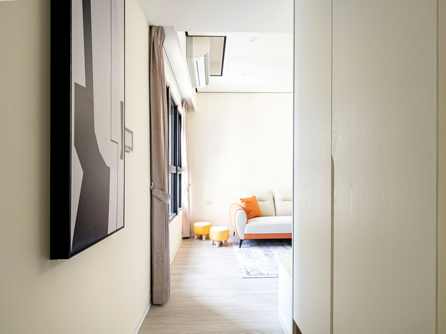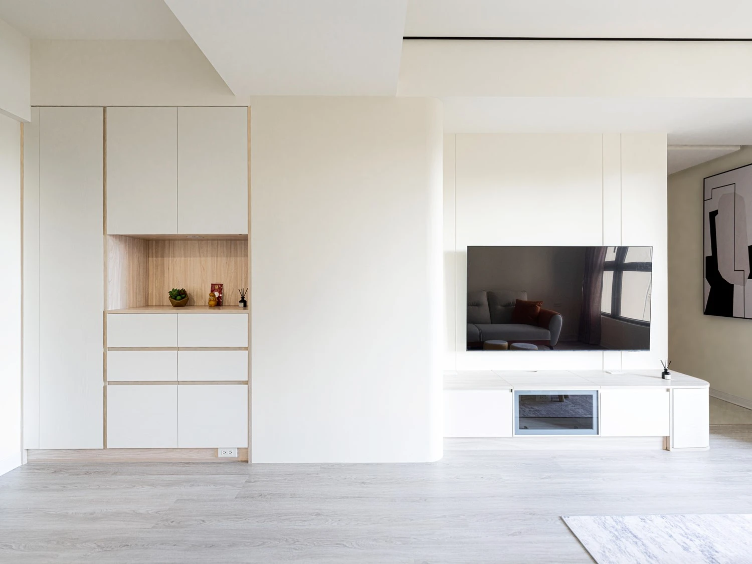 帶點奶油感的白色,串聯天與壁,延伸出一段和諧有序的畫面,