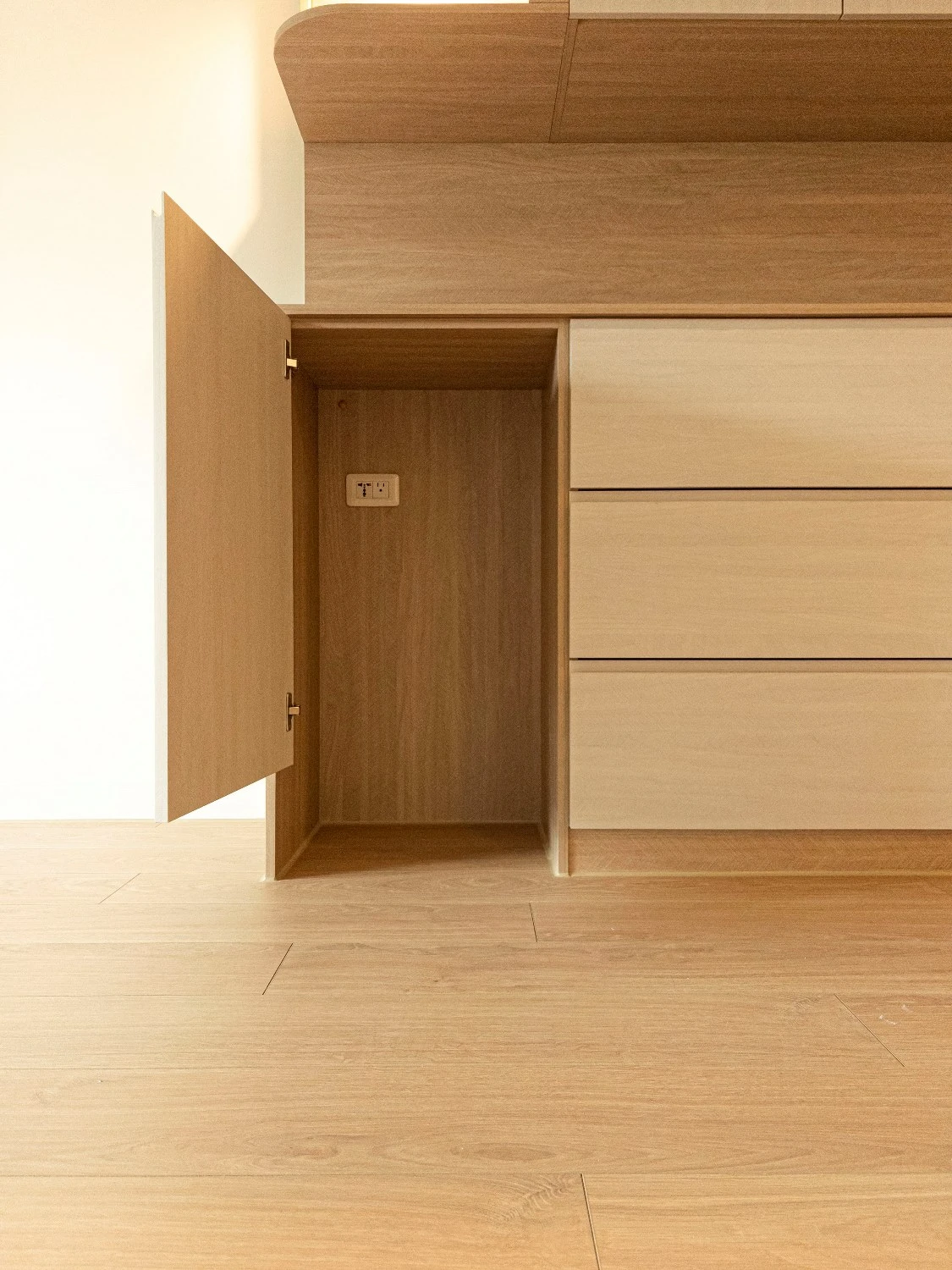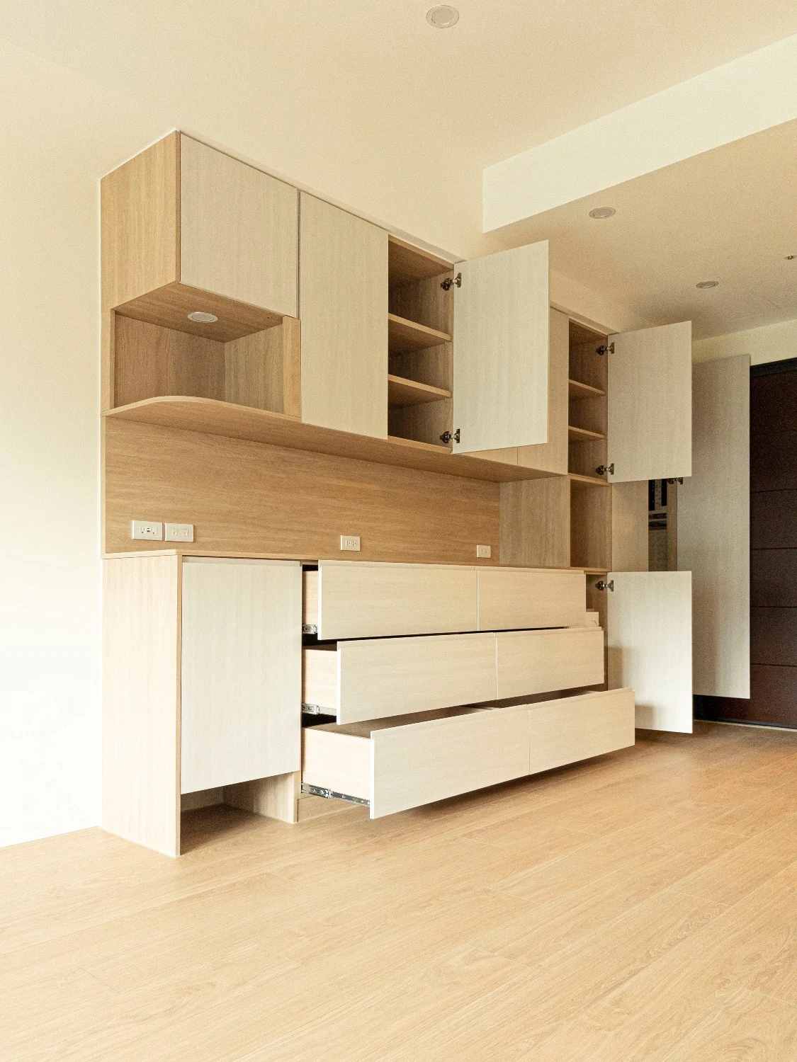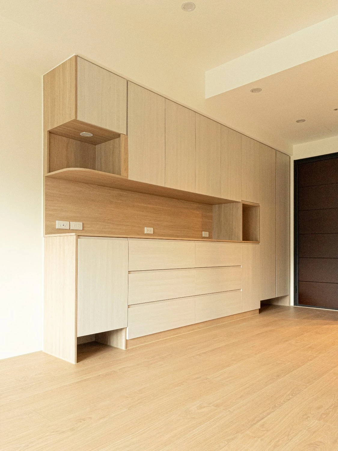 樑下畸零空間打造收納機能,將收納空間與牆面融為一體提升坪效