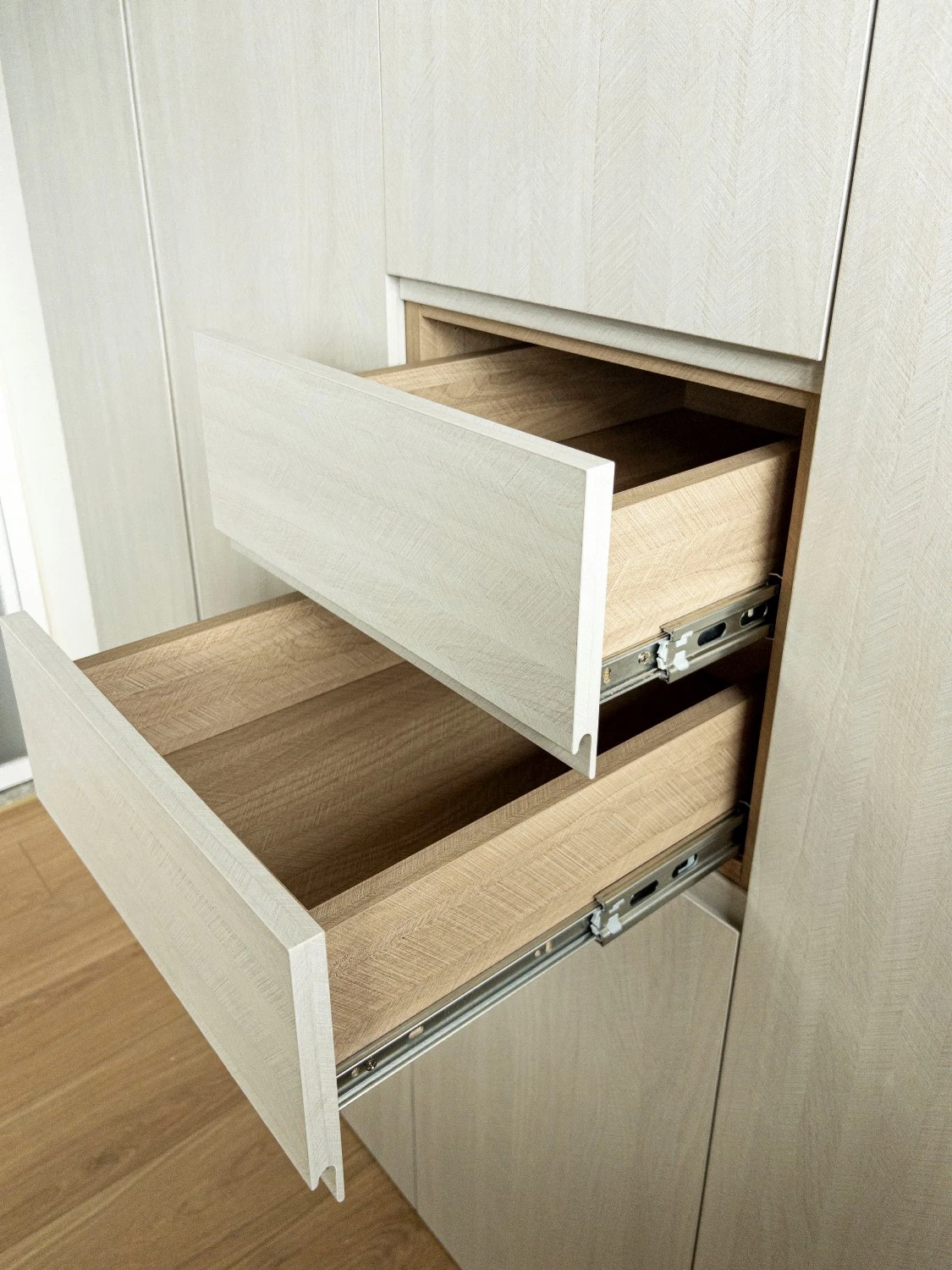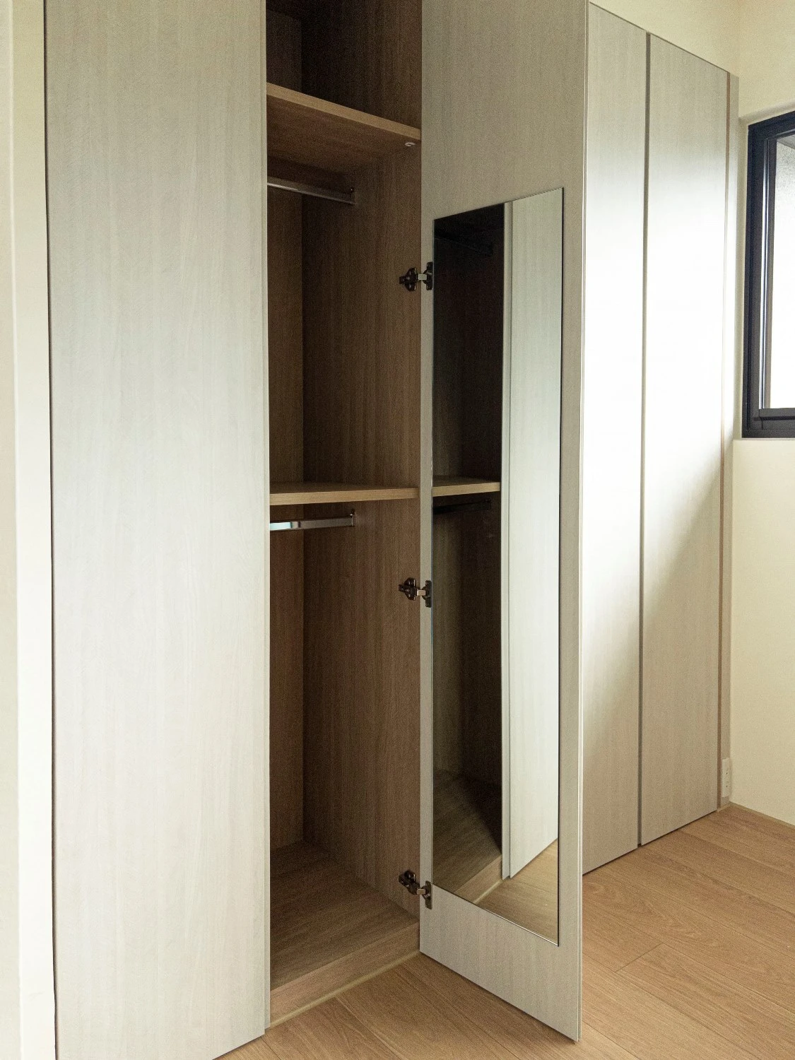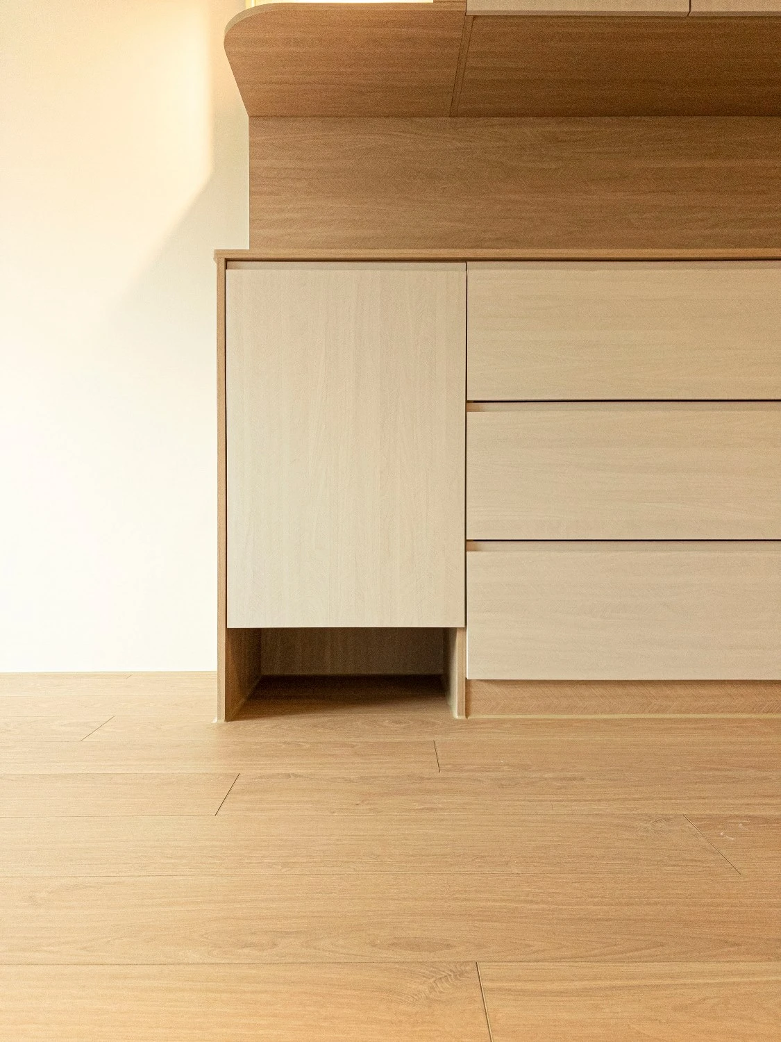 樑下畸零空間打造收納機能,將收納空間與牆面融為一體提升坪效