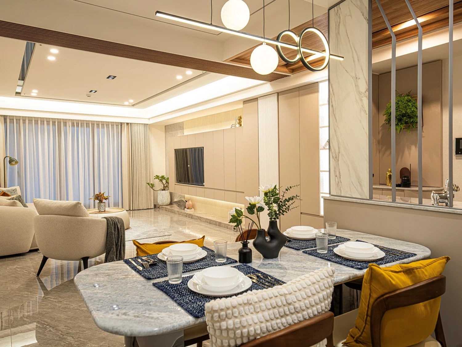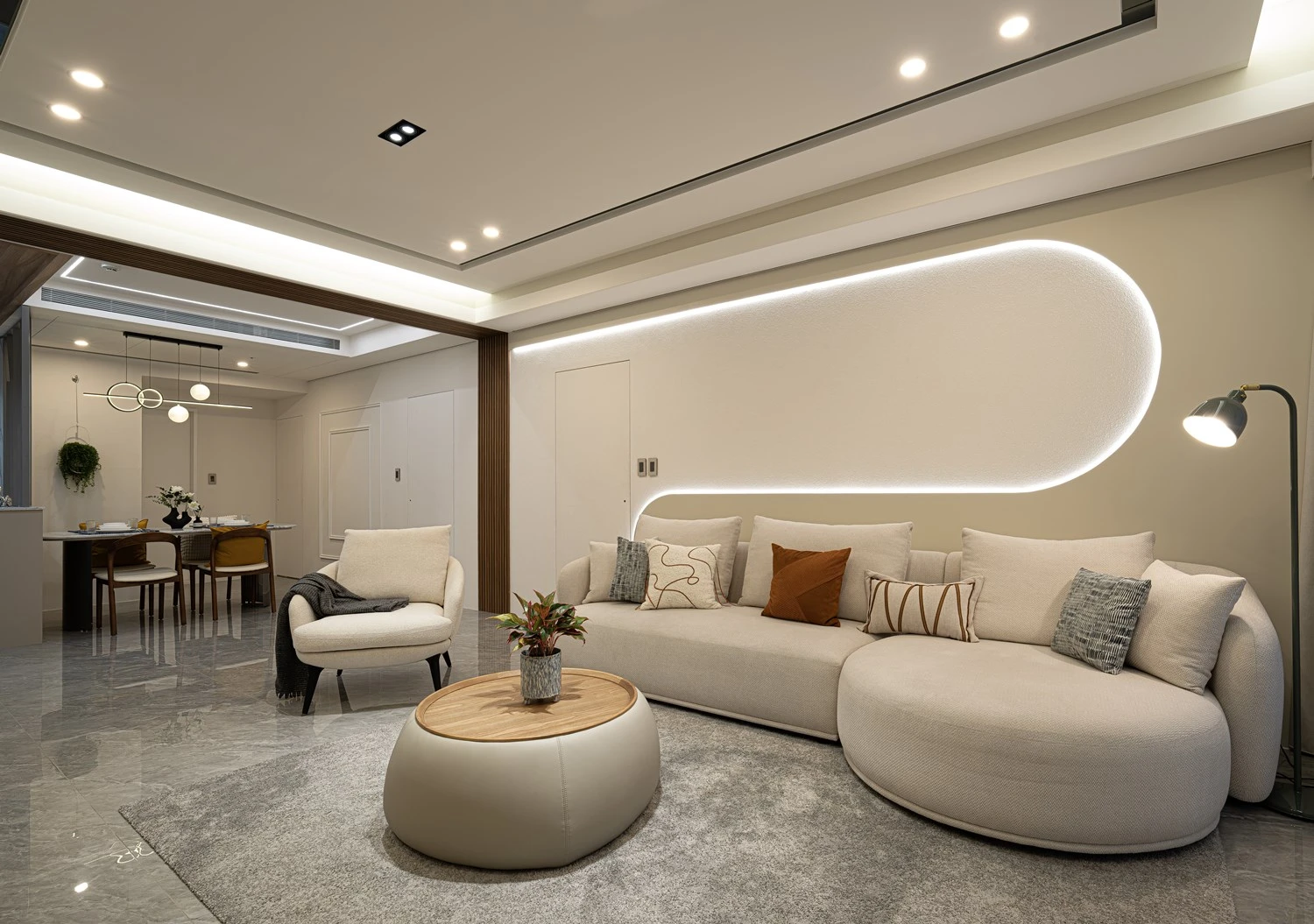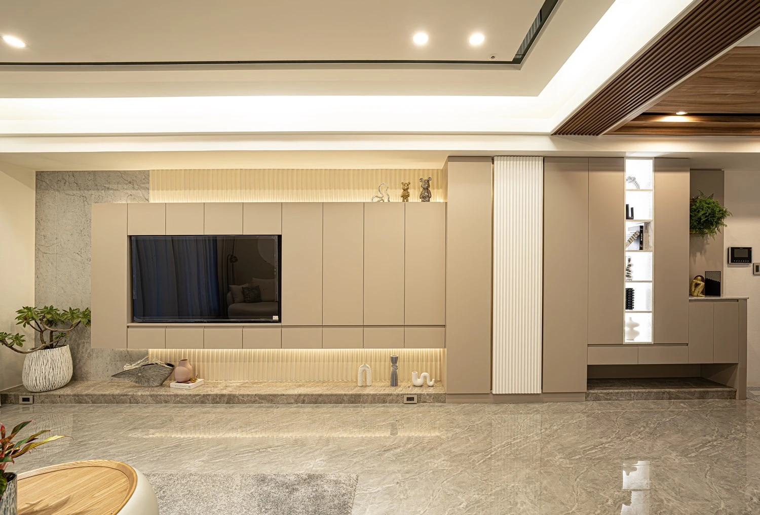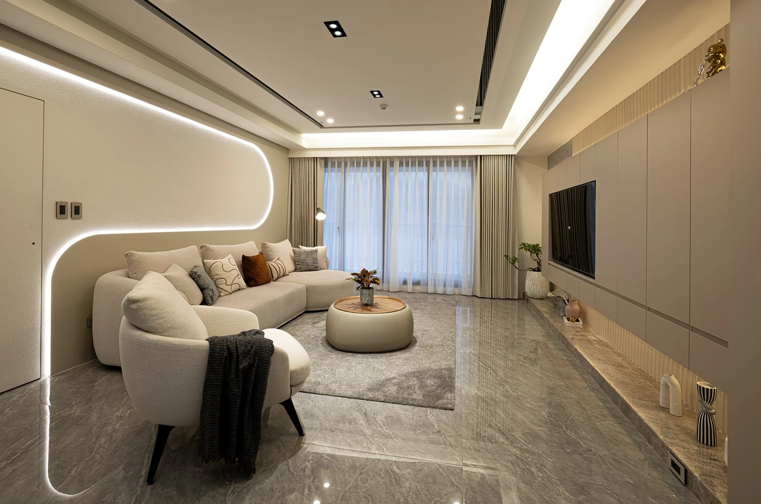 客廳透過線板的設計 帶有現代簡約感的氛圍