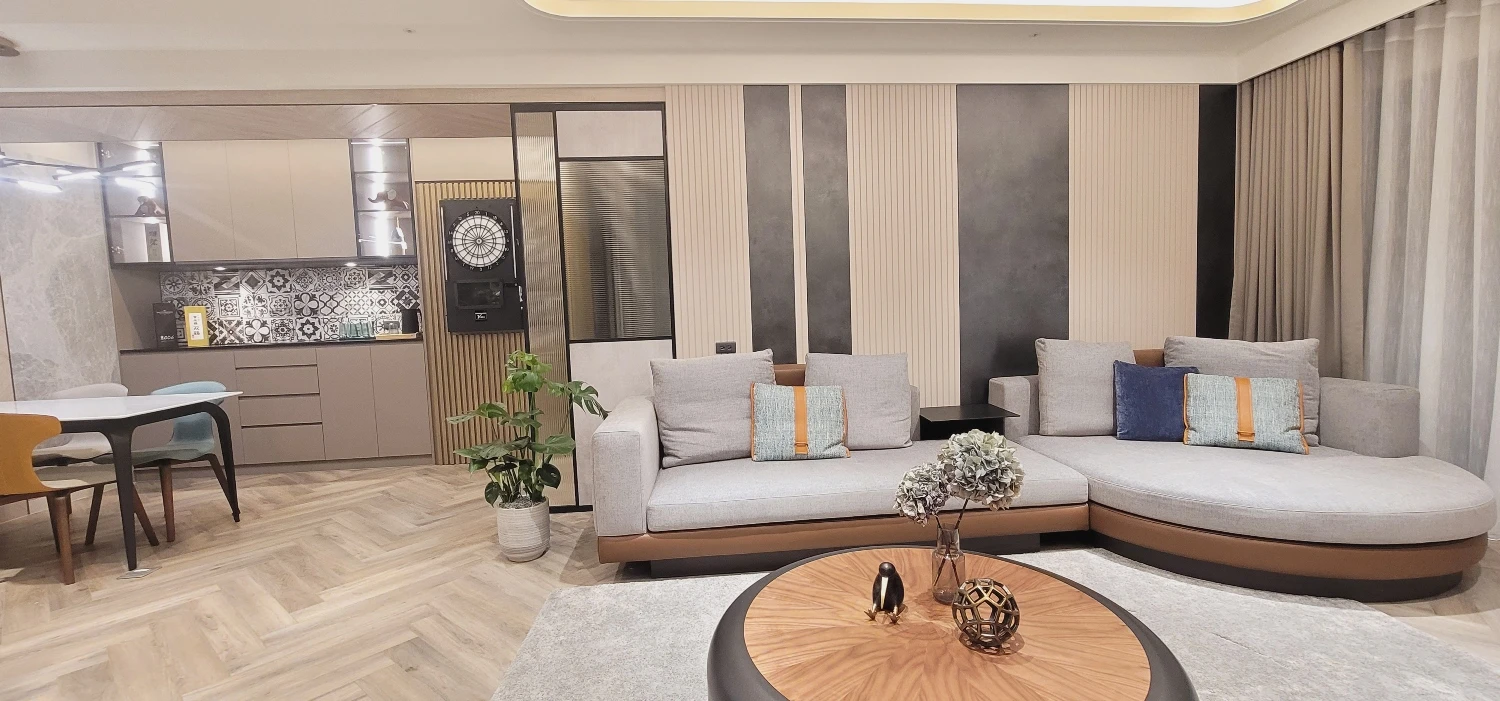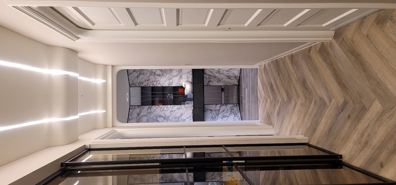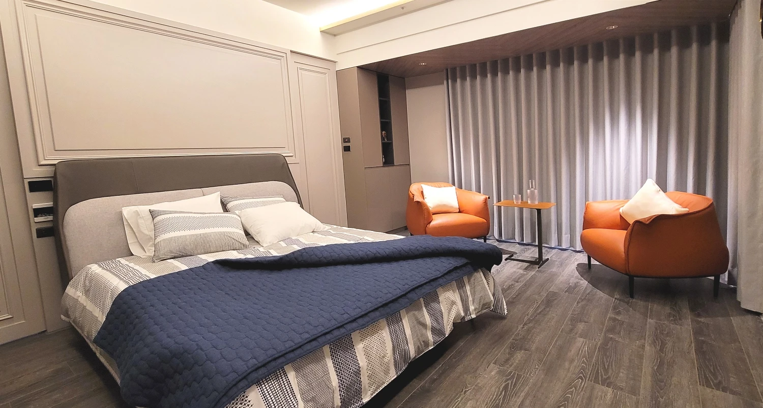 親子宅給人的刻板印象總跳脫不了自然樸實、溫馨舒適等關鍵字,然而本案男主人嚮往的理想家居則冀盼徜徉輕奢氛圍,極喀室內裝修設計遂巧借異材質拼貼疊砌瑰麗層次,勾勒卓爾不凡的魅力之境。此外,考量整體坪數較大、各項電器設備的開關距離拉得較遠,全屋悉心搭載智能科技,多數動作皆能透過聲控完成指令,使女主人在育兒、家務方面更加得心應手,竭力滿足每位家庭成員需求,演繹自在自適、同享天倫之樂的生活場域,領略富足、自由的心靈沉澱。