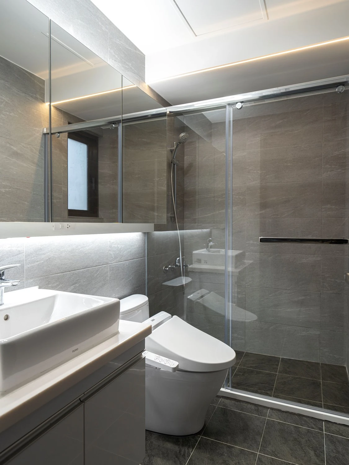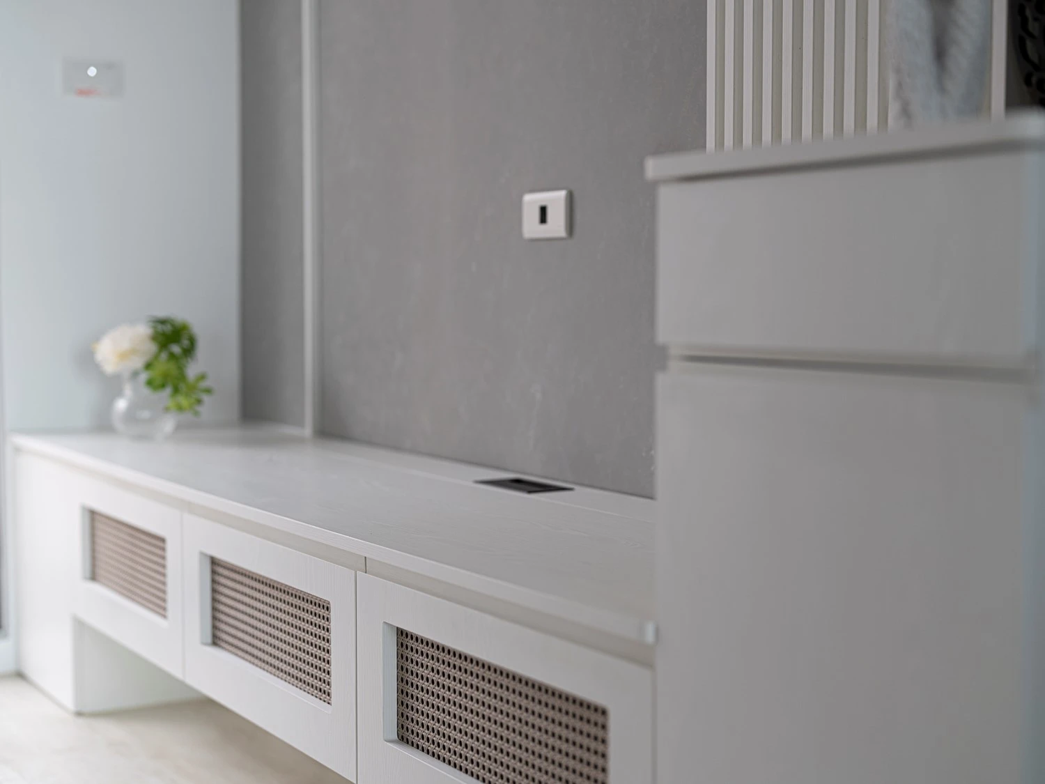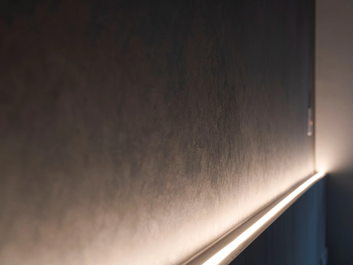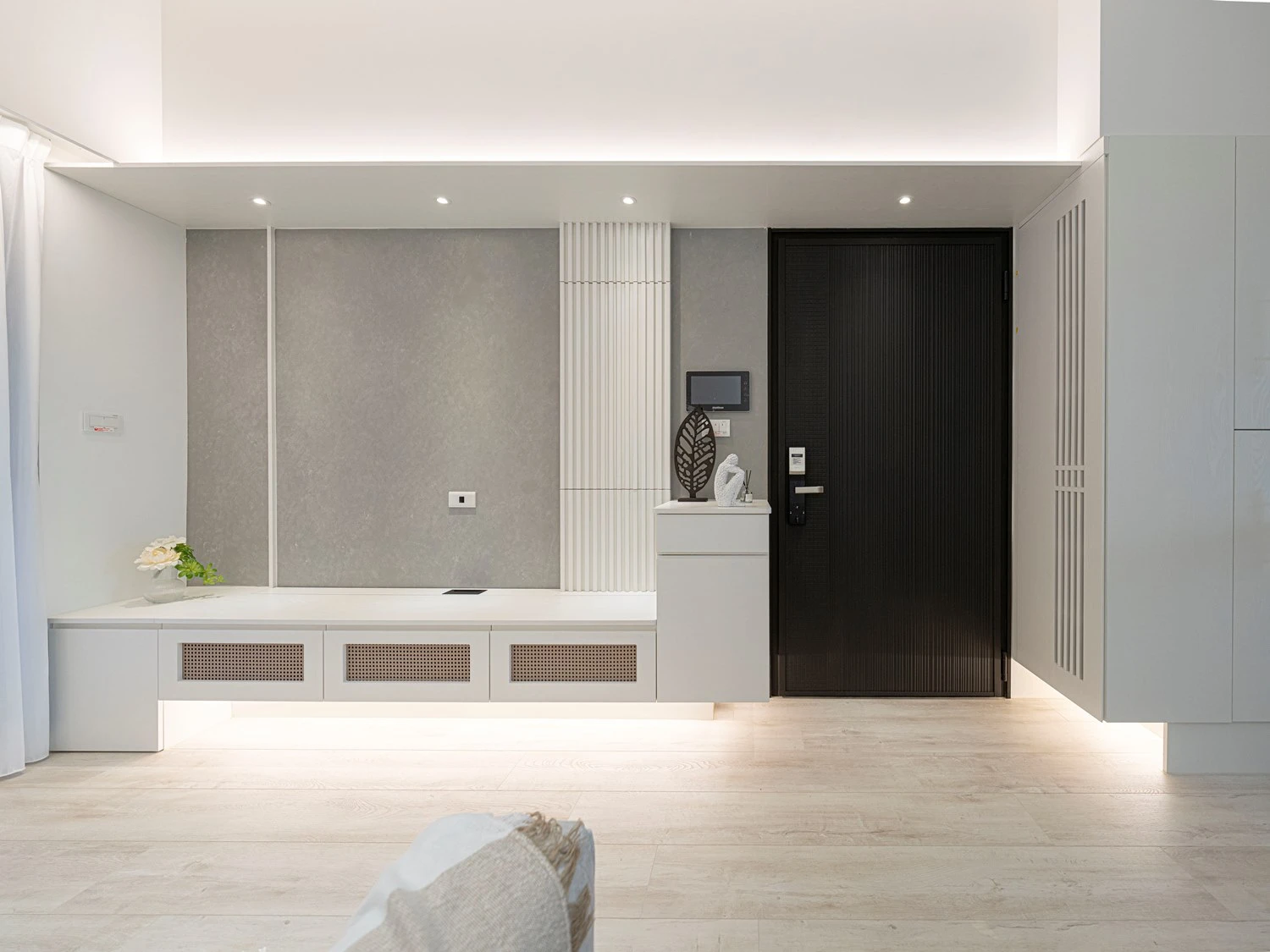 所有懸浮櫃體下方皆配置線燈,讓進門時不會感到壓迫或出現下方陰暗的視覺效果