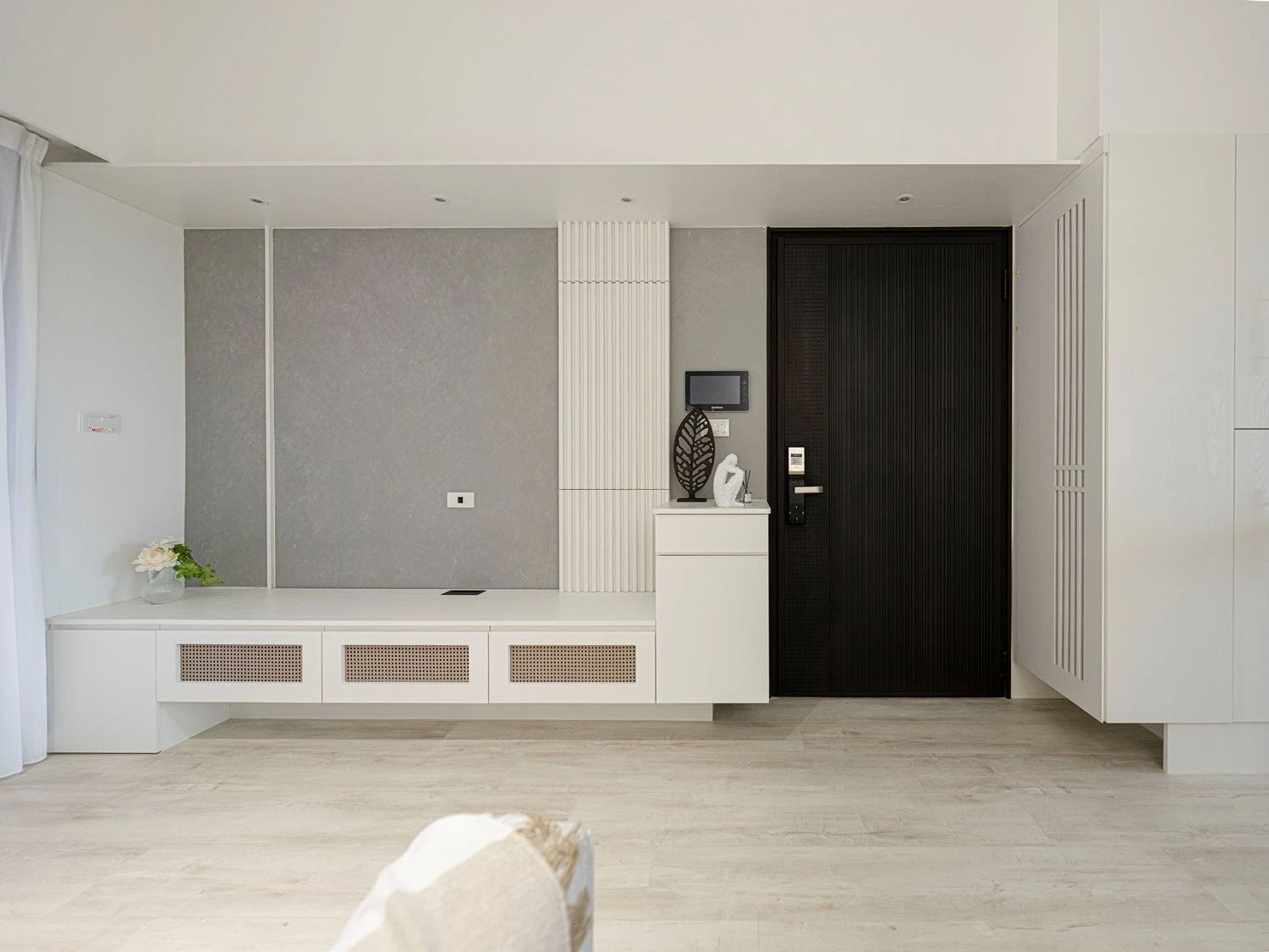 不同於以往偏向沉穩暗色的風格,小雁設計師這次以極簡白搭配淺色木紋,營造溫潤明亮的居家氛圍